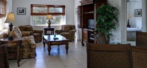 2 Bedroom Suite, our signature accommodation. Rooms range from 800 square feet up to 1200 square feet. All suites have fully equipped, full-size kitchens, air conditioning, ceiling fans, living and dining areas, satellite tv, free wifi, free parking and in-room safe.